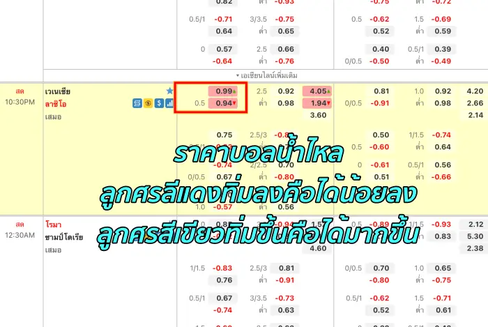 เมื่อเริ่มแทงบอล สิ่งที่ท่านต้องรุ้เอาไว้กับการแทงบอลก็คือราคามันเปลี่ยนกันได้ เช้ามาราคานี้ เย็นมาราคาไหลไปแล้ว โดยส่วนใหญ่แล้วที่ไหลนั้น จะเป็นค่าน้ำครับ ซึ่งการแทงบอลในเว็บนั้น จะดูการไหลของค่าน้ำได้ง่ายๆดังนี้