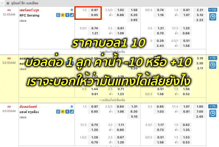 ราคาบอล 1 10 ราคานี้ต่อ หนึ่งลูก แต่ค่าน้ำ -10 หรือ +10 - fun88thai.help